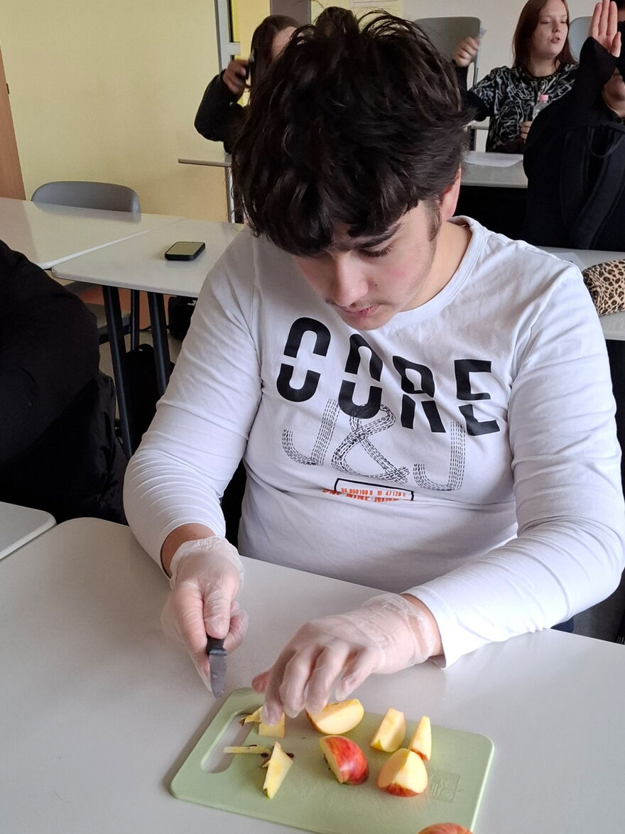 Zurück in der Schule wurde eine eigene Müslimischung zubereitet, bei der bewusst auf industriellen Zucker verzichtet wurde. Stattdessen dienten gehackte Datteln als natürlicher Zuckerersatz. Beim anschließenden gemeinsamen Probieren zeigte sich: Viele fanden das Müsli „zu wenig süß“ – ein spannender Aha-Effekt, der zum Nachdenken über das eigene Geschmacksempfinden und den täglichen Zuckerkonsum anregte.