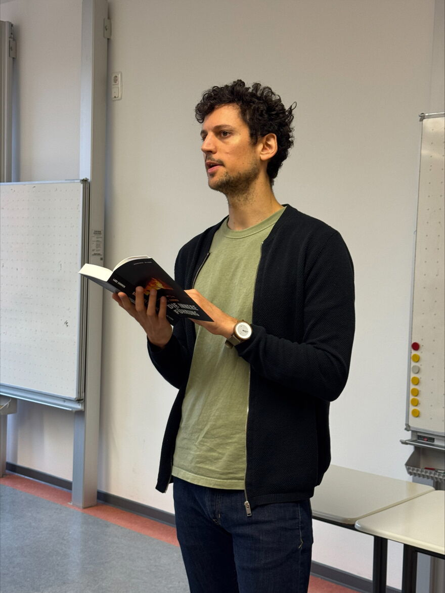 Ein besonderer Moment der Veranstaltung war die Lesung aus einem seiner Bücher. Gemeinsam mit den Schülerinnen und Schülern analysierte Fassnacht zwei Kapitel, um zu zeigen, wie stark sich Wirkung und Stimmung eines Textes durch Sprache, Grammatik und Erzählperspektive verändern können. So wurde Literatur plötzlich lebendig.