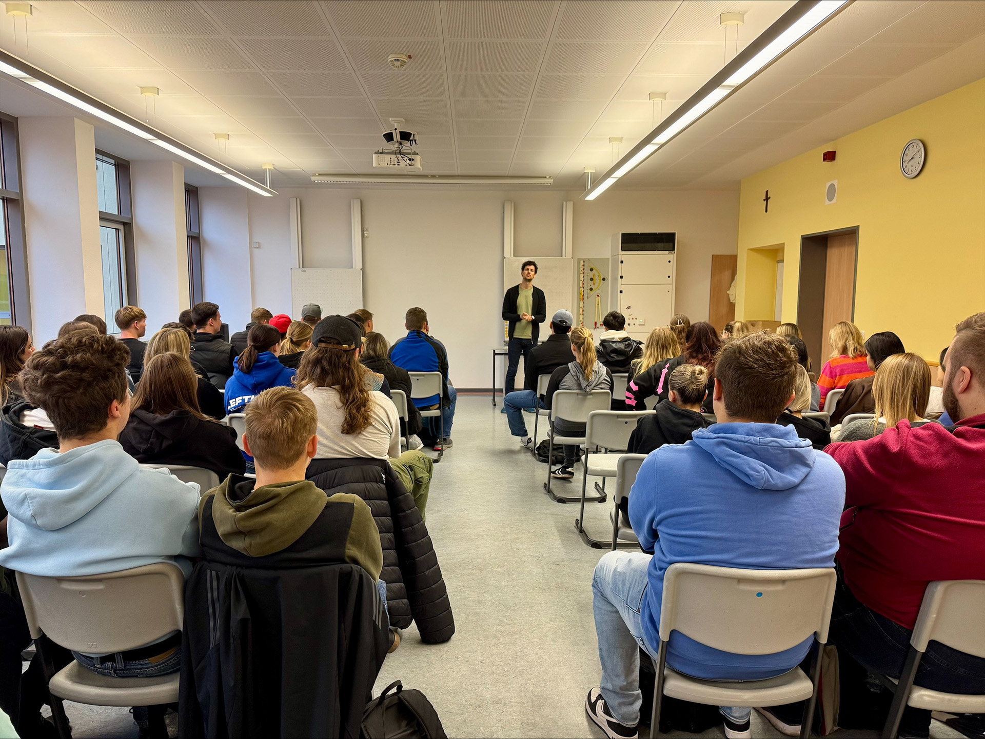 Fassnacht sprach über seinen Alltag als Schriftsteller, über den Aufwand, Texte auswendig zu lernen und darüber, dass Schreiben für ihn vor allem eines ist – Leidenschaft. In einem offenen Gespräch stellte er sich den vielen Fragen der Schülerinnen und Schüler: Wie wird man Autor? Wie findet man einen Verlag? Und braucht man Glück, um erfolgreich zu sein? Seine ehrlichen und nahbaren Antworten machten deutlich, dass Talent, Ausdauer und ein bisschen Zufall oft Hand in Hand gehen.