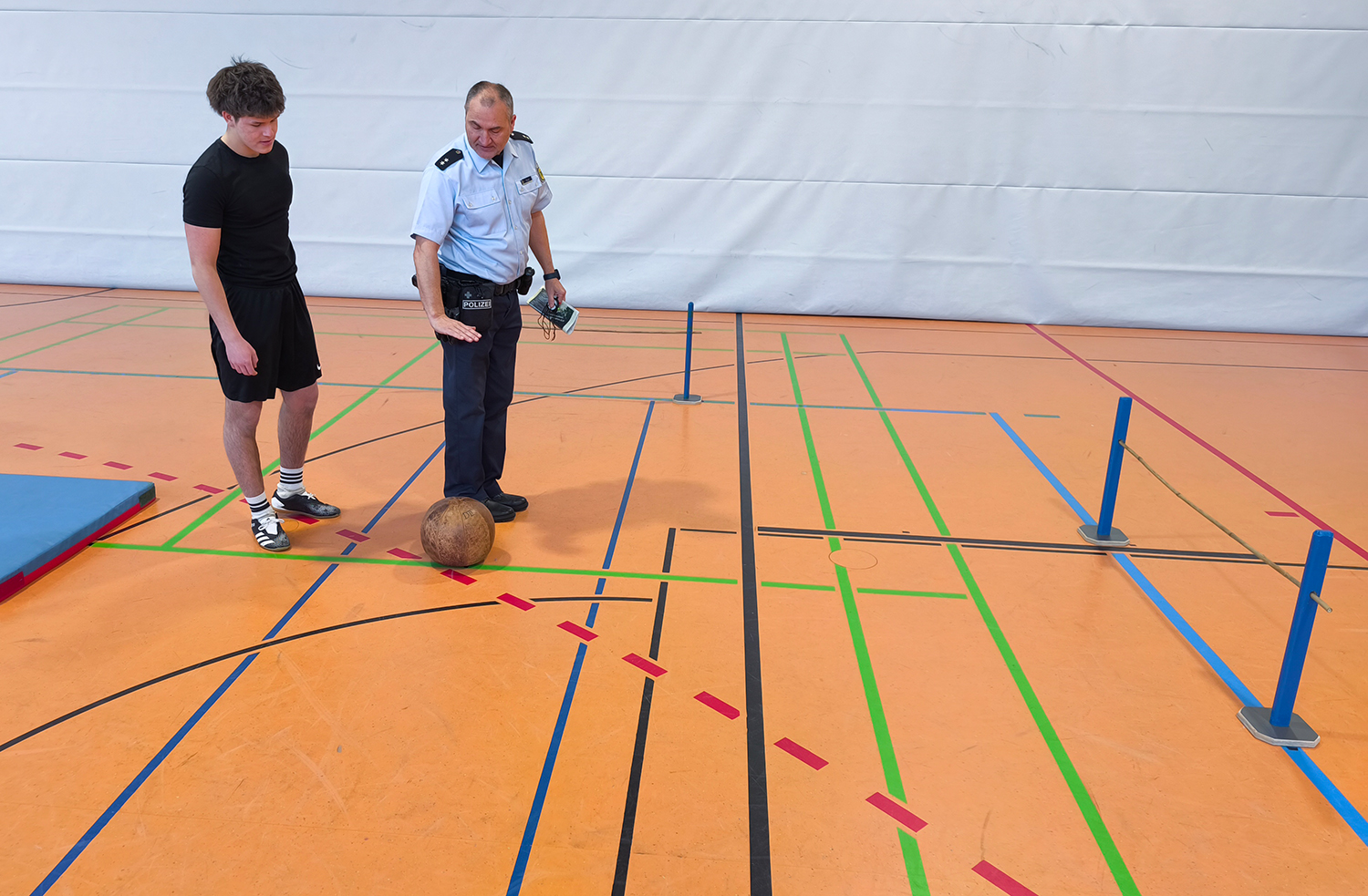 Im Anschluss führten die Beamten durch ein gemeinsames Aufwärmtraining und erläuterten die einzelnen Disziplinen des Sporteignungstests verständlich, praxisnah und mit vielen hilfreichen Hinweisen aus der eigenen Berufserfahrung. Danach konnten die Jugendlichen ausgewählte Testbestandteile selbst ausprobieren und ihre eigene Leistungsfähigkeit realistisch einschätzen.