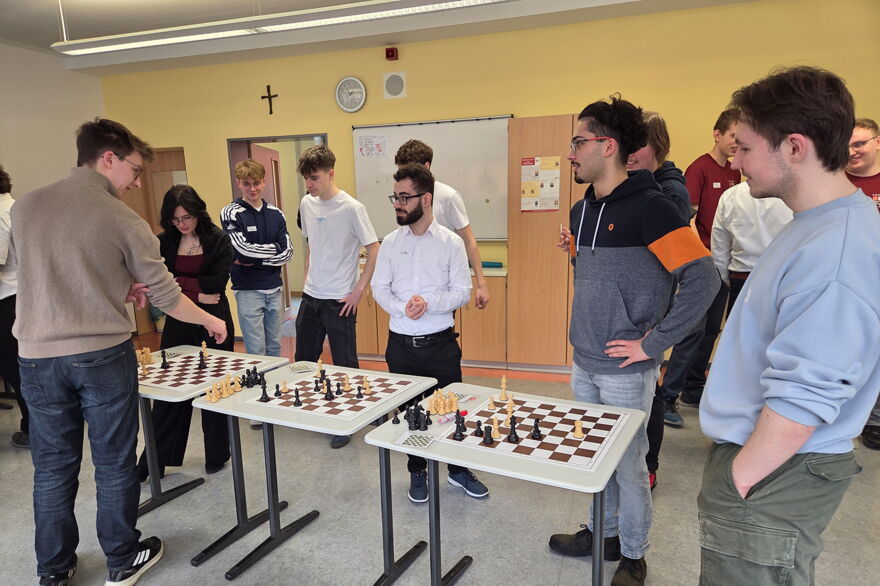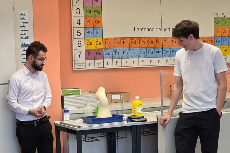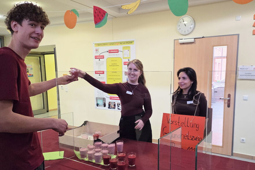 Im Sozialzweig kamen die Besucherinnen und Besucher beim „Speeddating“ direkt mit den Schülerinnen und Schülern ins Gespräch und erfuhren aus erster Hand, was den Bereich so besonders macht. Der Gesundheitszweig bot neben den frischen, gesunden Smoothies informative und charmante Vorträge rund um die Ausbildungsrichtung. Die Wirtschaft zeigte mit Quiz, Kaffeespezialitäten und einem anschaulichen Blick in den KI‑gestützten Wirtschaftsunterricht, wie moderne Themen den Unterricht bereichern. Der Technikzweig überzeugte mit seinen vielen verschiedenen Projekten und der Vorführung des Affenschusses, bei dem live sichtbar wurde, wie faszinierend Physik sein kann. Wer Lust hatte, konnte später sogar knifflige Schachzüge ausprobieren. Direkt daneben begeisterten Mathe‑Knobelspiele und die Demonstration der Brachistochrone alle, die gerne tüfteln. Auch die Chemiker waren wieder im Einsatz und zeigten viele „magische Effekte“.