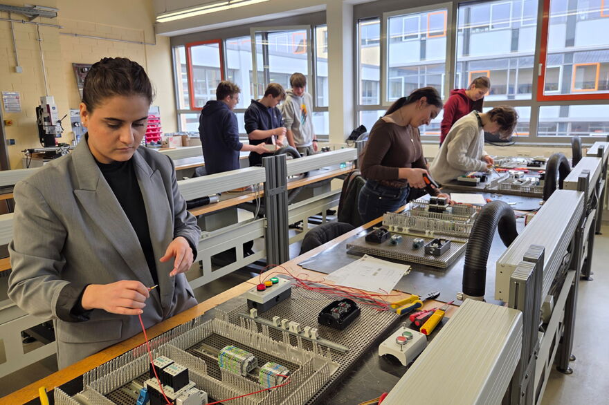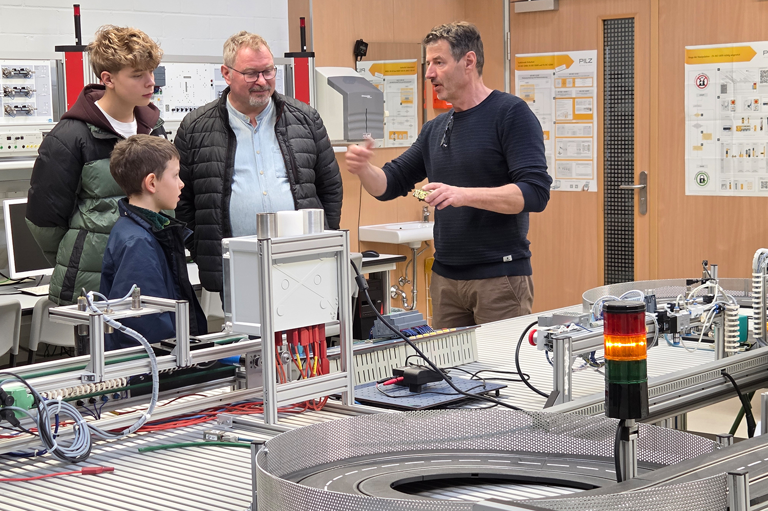 Ein besonderer Publikumsmagnet waren die Werkstätten. Dort zeigten die Schülerinnen und Schüler ihren praktischen Alltag: präzises Arbeiten an der 5‑Achs‑Fräsmaschine, kreative Objekte aus dem 3D‑Drucker, eine digital gesteuerte Carrera‑Bahn und ein selbst programmierter Roboterarm ließen große und kleine Gäste staunen.