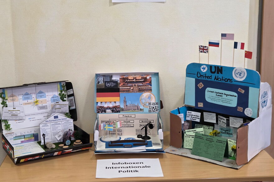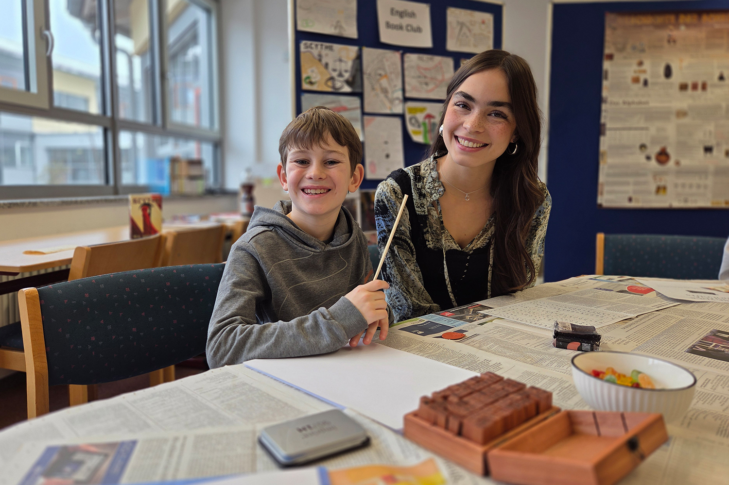 Doch nicht nur Technikfans kamen auf ihre Kosten. Auch sprachlich gab es viel zu entdecken: Epochenboxen, Schreib‑Workshops und das interaktive Englisch‑Schauspiel „Werewolf“ luden zum Mitmachen ein. Zudem gab es Einblicke in den English Book Club, die Fremdsprachenkorrespondenz und eine Kurzinfo zum Cambridge‑Zertifikat.