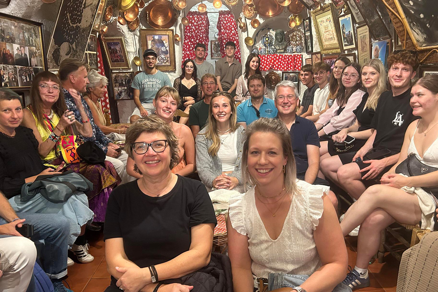 Neben dem Sprachkurs war das Kulturprogramm ein zentraler Bestandteil der Reise. Die Teilnehmerinnen und Teilnehmer hatten die Gelegenheit, Granada und seine Umgebung zu erkunden. Zu den Höhepunkten zählten Stadtführungen durch das historische Zentrum Granadas, einschließlich der beeindruckenden Alhambra, die als eines der bedeutendsten Bauwerke der islamischen Architektur gilt. Ein Ganztagsausflug in die Alpujarras ermöglichte es den Schülerinnen und Schülern, traditionelle andalusische Bergdörfer zu besichtigen und einen Einblick in die lokale Wirtschaft zu erhalten. Außerdem besuchten sie die arabische Altstadt Albaicín und erlebten eine Flamenco-Show im Sacromonte, die ihnen die kulturelle Vielfalt Spaniens näherbrachte. Betriebsbesichtigungen bei einer lokalen Bierbrauerei und einer Produktionsstätte für Serrano-Schinken gewährte interessante Einblicke in das spanische Wirtschaftsleben. Außerdem genossen die Jugendlichen bei einer Wanderung im Naturpark Huétor Santillán grüne Landschaften und ein Strandaufenthalt an der Costa Tropical durfte nicht fehlen.
