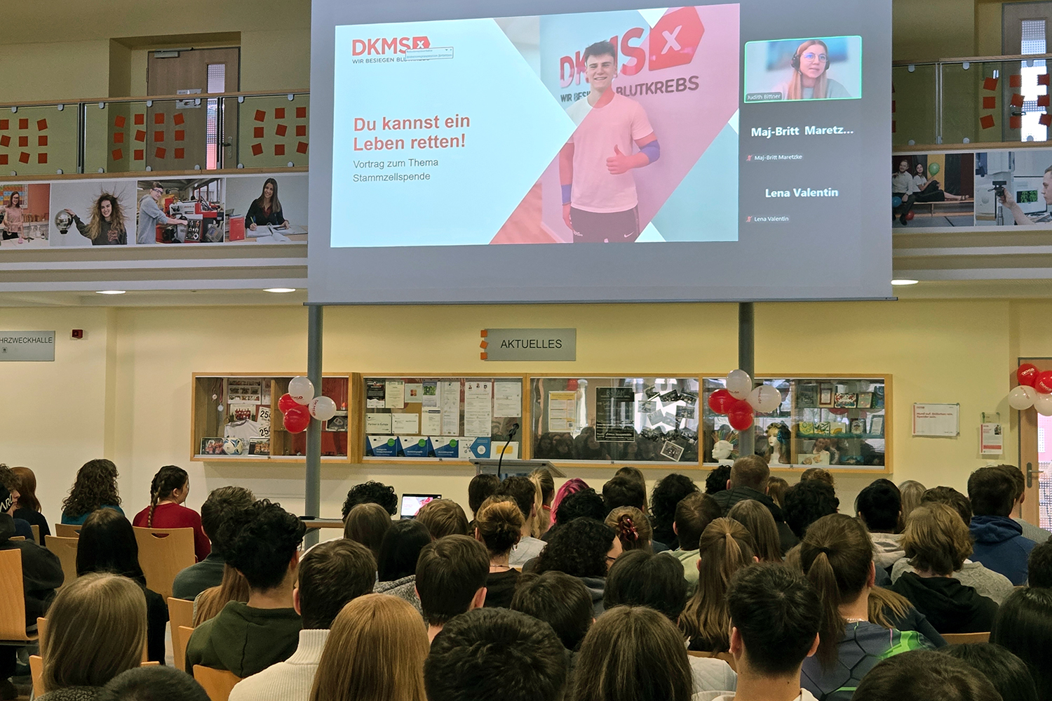 An der FOSBOS fand eine zentrale Vormittagsaktion mit externen DKMS-Referentinnen und -Referenten statt, an der 25 Klassen teilnahmen. Neben der organisatorischen Unterstützung waren hier vor allem die Schülerinnen und Schüler des Gesundheitszweigs (FOS-Gesundheit) eingebunden: Sie begleiteten den Ablauf, standen als Ansprechpersonen bereit und unterstützten bei der Registrierung. Ihre fachlichen Vorkenntnisse halfen dabei, Unsicherheiten abzubauen und Hemmschwellen zu überwinden.