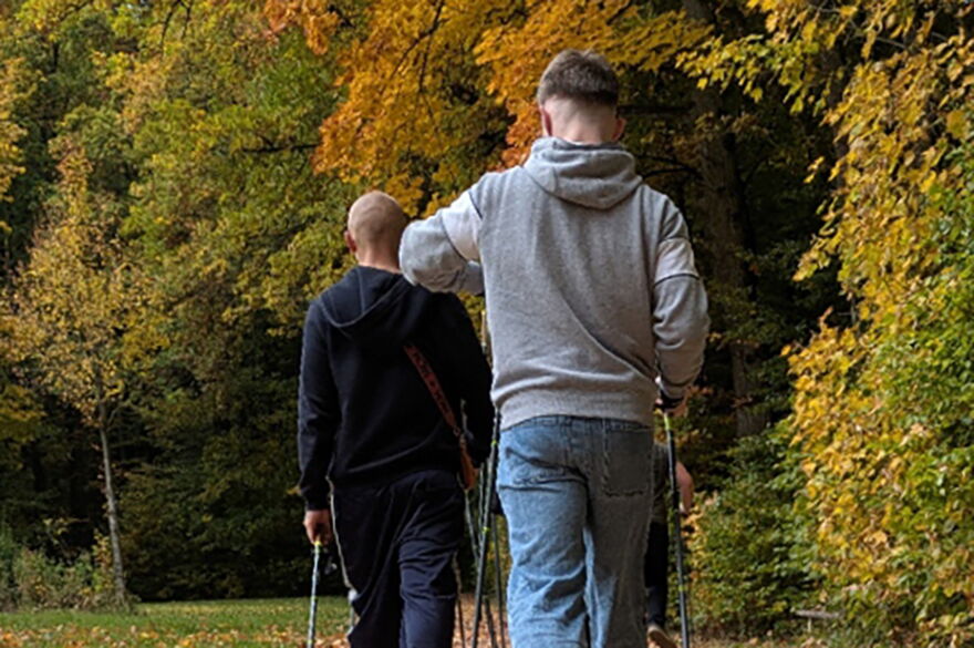 Die Schülerinnen und Schüler der Berufsvorbereitungsklasse an der Berufsschule Amberg nutzen gemeinsam mit ihren Lehrkräften den goldenen Oktober. Während der Woche der Gesundheit und Nachhaltigkeit machen sie einen sportlichen Spaziergang auf den herbstlichen Mariahilfberg. Raus aus dem Klassenzimmer, Bewegung und Kommunikation - das bringt Abwechslung und macht fit.