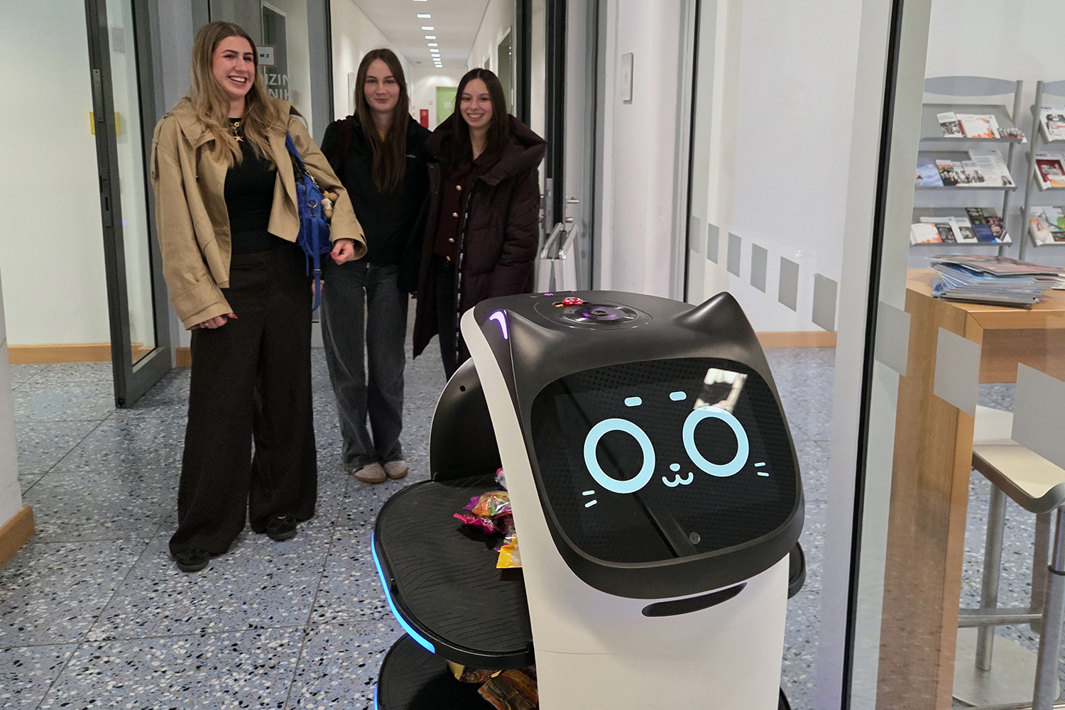Die 11. Klassen des Wirtschaftszweigs der FOSBOS Amberg nutzten ihren Besuch am Tag der offenen Tür der OTH Weiden, um echte Hochschulluft zu schnuppern. Schon auf den ersten Metern durch das Gebäude zeigte sich, wie modern und lebendig der Campus ist: Ein autonomer Serviceroboter rollte durch die Flure, bot kleine Snacks an und sorgte sofort für Gesprächsstoff.